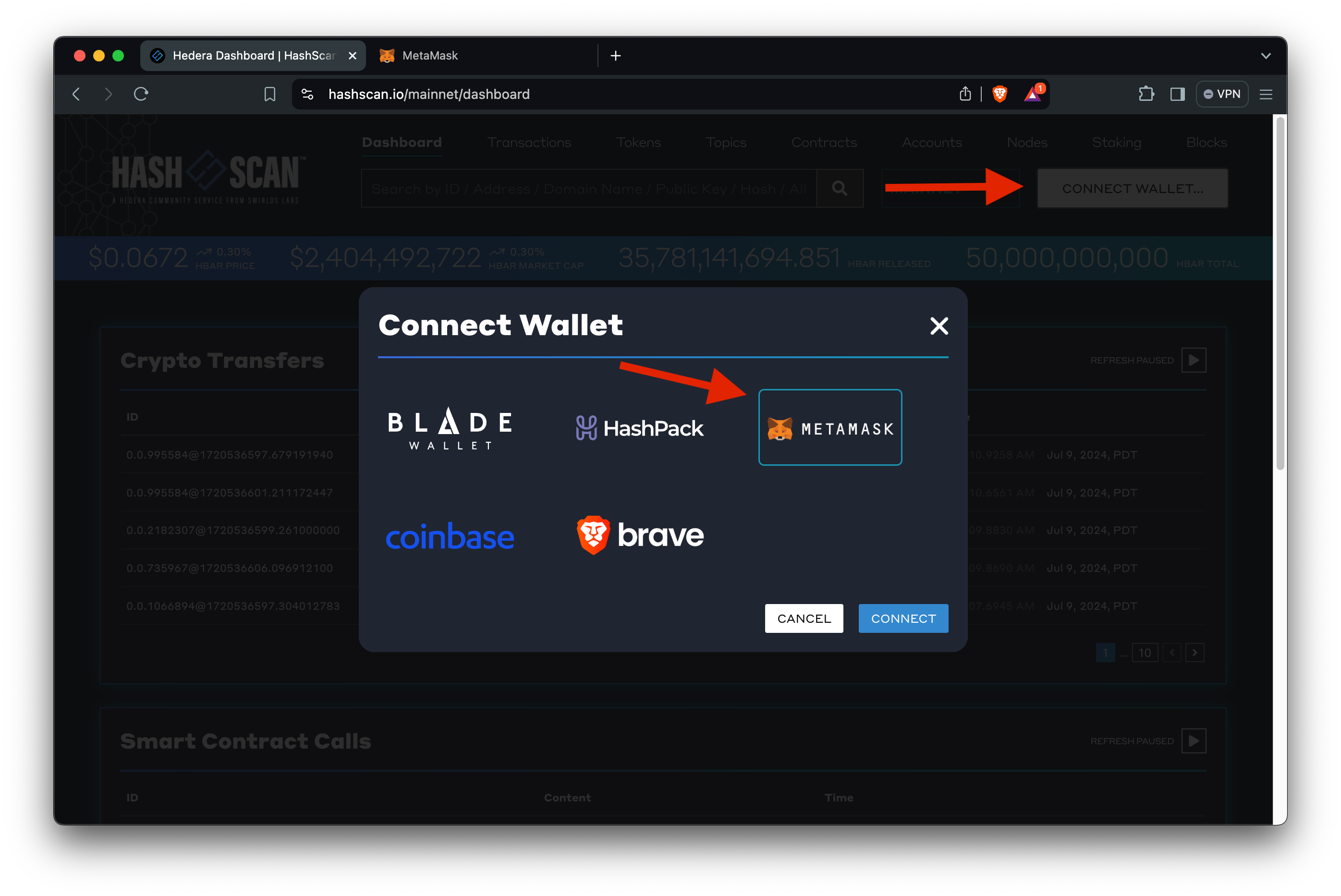 4. If you haven’t added the Hedera network to MetaMask yet, HashScan will prompt you to add it.